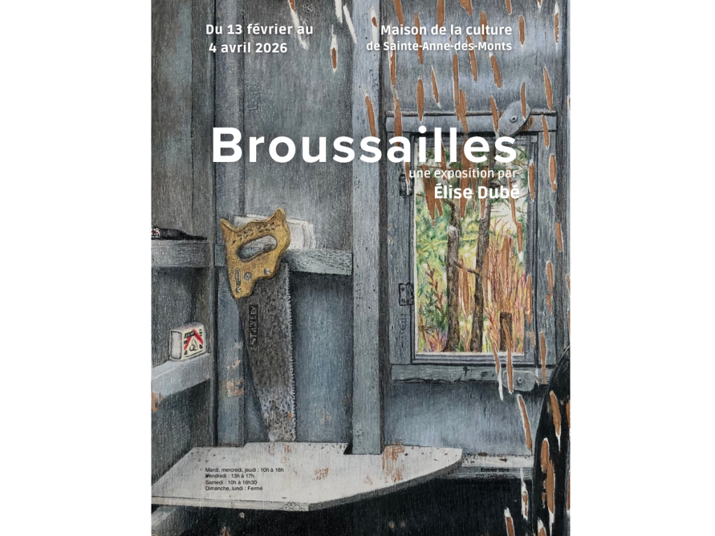 L’exposition Broussailles prend pour point de départ les lieux que l’artiste Élise Dubé habite : sa maison, sa shed, sa terre à bois, et les broussailles qui les entourent.