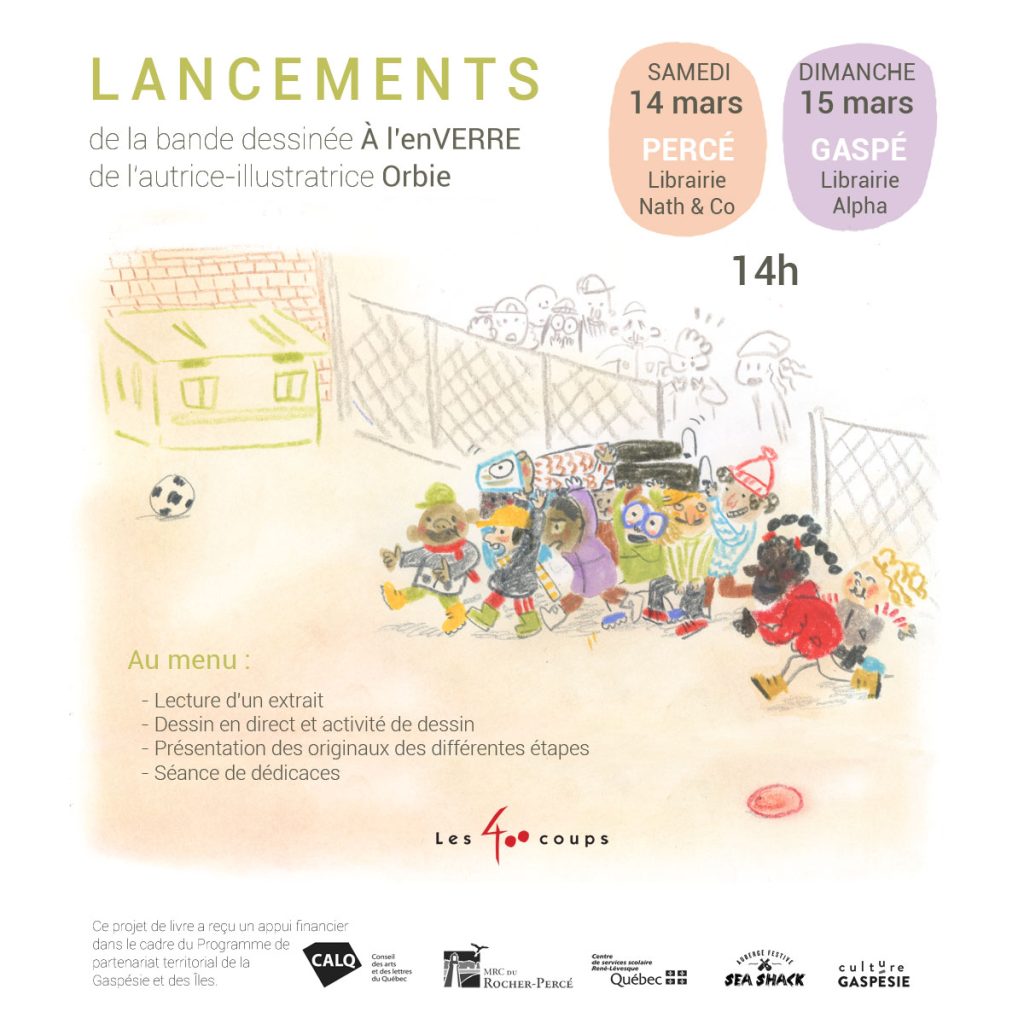 Lancement de la BD jeunesse À l’enVERRE (Orbie) à Percé