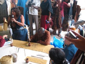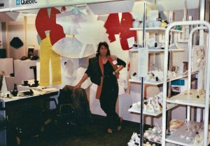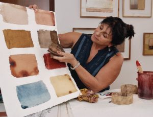 Formée à l’Institut des Arts Appliqués et aux Beaux-Arts, Denise Hudon s’impose d’abord comme première femme muraliste au Québec. Sous l’influence d’un maître céramiste, elle se tourne vers la sculpture d’argile et innove dans le papier pulpe moulé. Dès 1984, invitée à représenter le Québec à New York, elle parcourt le monde pendant 23 ans en véritable ambassadrice. Ses explorations en Afrique, en Asie et au Moyen-Orient autour des teintures végétales enrichissent un parcours déjà reconnu et exposé dans des collections prestigieuses, notamment celle du ministère extérieur du Canada. Aujourd’hui, forte de cette notoriété, elle est sollicitée pour représenter le Canada au Mexique.