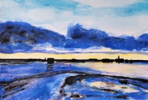 En 2019, mue par un désir d’espace et de plénitude je commence une série de toiles à l’acrylique intitulée Horizons qui magnifie les paysages de ciels et de mer.