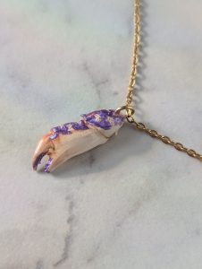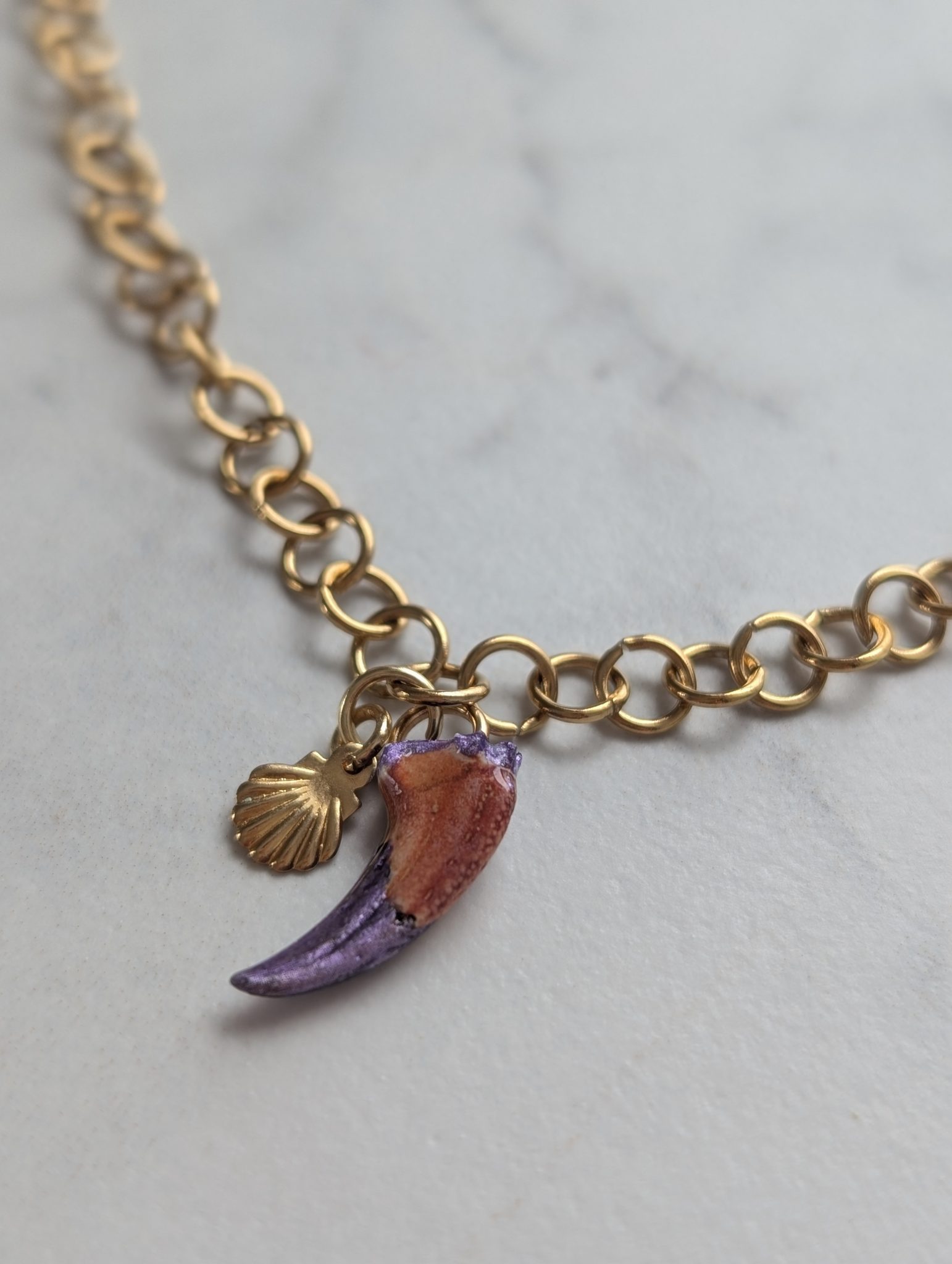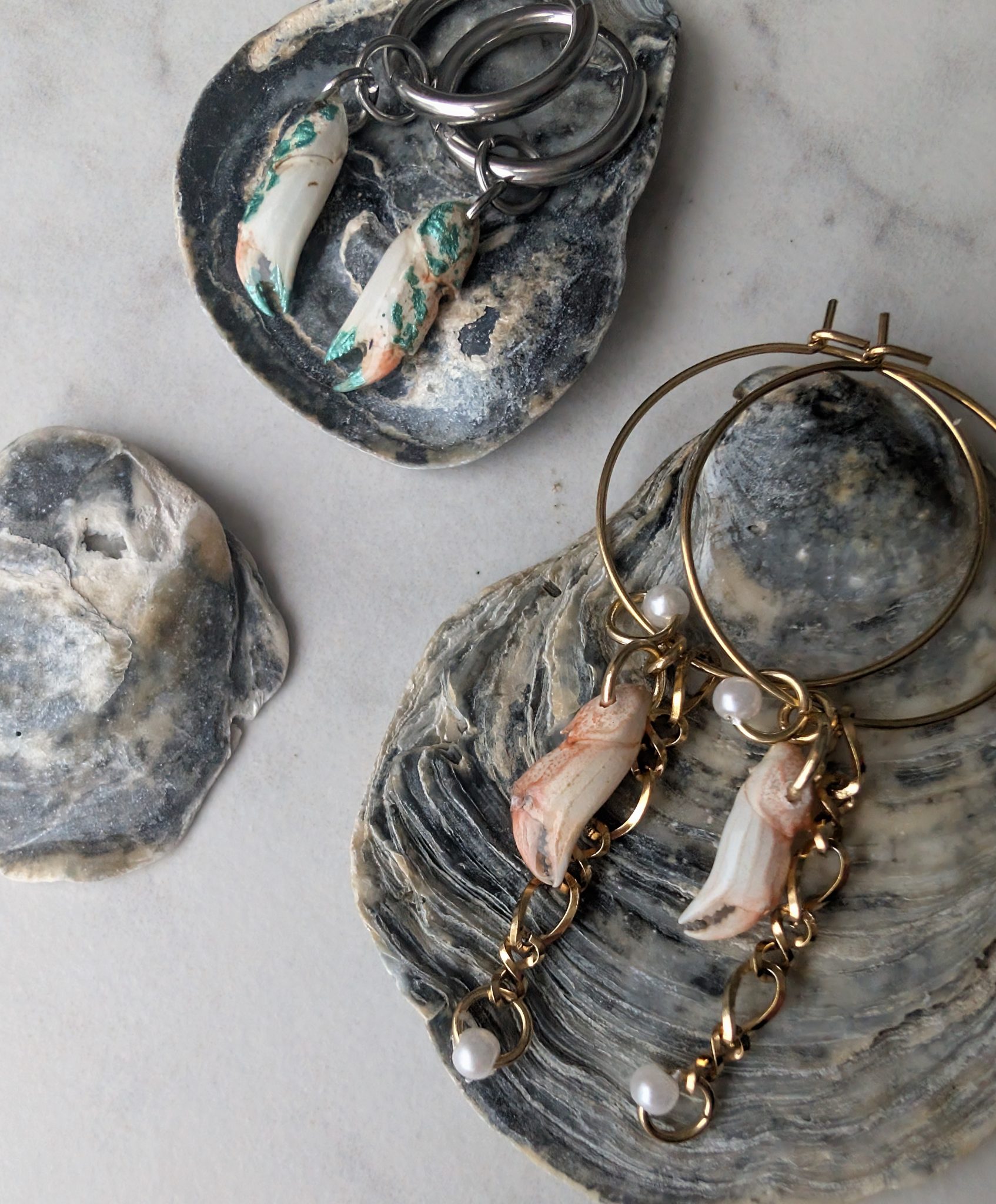 Laetitia Jeanne est artisane en confection de bijoux et illustratrice et son travail est profondément inspiré par la mer. Depuis toujours, l’élément de l’eau joue un rôle essentiel dans sa vie, et à travers ses bijoux, elle a souhaité offrir à chacun la possibilité de porter un petit bout de la mer au quotidien. Chaque pièce qu’elle crée est une manière de se reconnecter à la force apaisante de l’eau et de garder, en soi, cette empreinte de la nature.Ses créations sont réalisés à partir de petits coquillages, moules, crustacés et algues récoltées sur les plages du fleuve Saint-Laurent, puis préservés dans la résine. En alliant la beauté des matériaux naturels à des apprêts en acier inoxydable, Laetitia Jeanne crée des pièces uniques, à la fois élégantes et durables. Ces bijoux, empreints de la sérénité de l’océan, sont pensés pour apporter à ceux qui les portent une connexion subtile avec la mer et ses bienfaits apaisants.