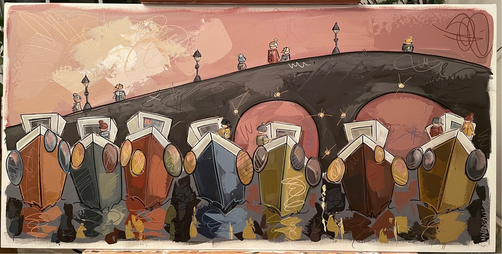 Deuxièmement, mes œuvres jouent avec les règles de l’art et les brisent une après l’autre. Je ne beurre pas jusqu’à la croûte, je dépasse les lignes, je joue du pinceau, de la spatule et au marqueur, je gratte, j’écorche; je m’amuse, quoi. Et pourtant au travers de toutes ces imperfections, gribouillis et reliefs, on retrouve une image d’une grande douceur aux couleurs ludiques.