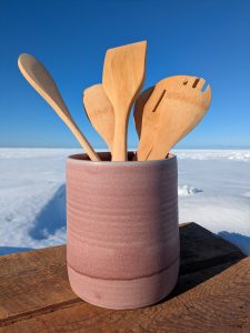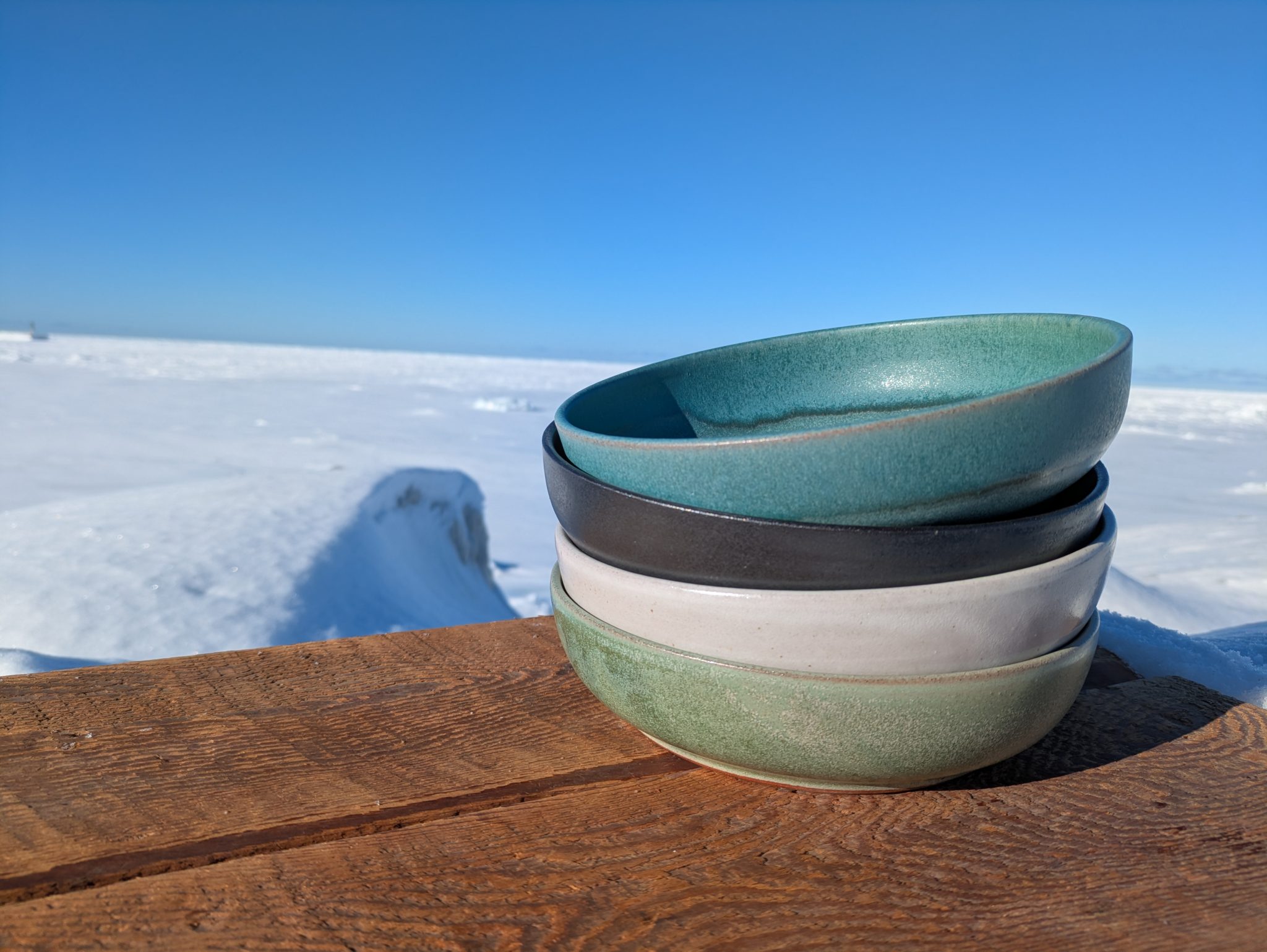 Ma principale technique de travail est le tour, ce qui me permet de travailler efficacement dans l’idée de la production en série. Mon apprentissage a été fait en grande partie de façon autodidacte, ce qui a influencé l’approfondissement d’une technique de façon libre et instinctive. Aimant beaucoup cuisiner, je fabrique de la vaisselle utilitaire en réfléchissant à l’objet dans son utilité et dans la mise en valeur de la nourriture. Dans une démarche constamment en évolution, j’explore le potentiel de variations de formes, de couleurs, de textures et de décors.